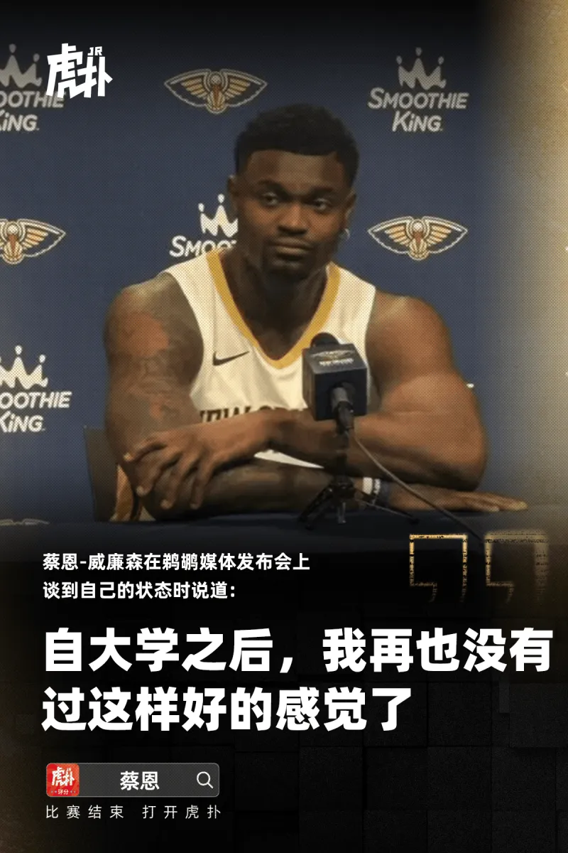 虎撲09月24日訊 今日,鵜鶘召開媒體發(fā)布會,狀態(tài)自蔡恩-威廉森接受了記者采訪。后再在談到自己的也沒有過樣好狀態(tài)時,蔡恩: