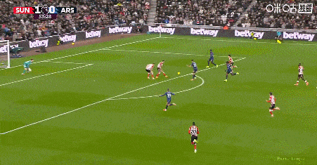 勒費后場被賴斯搶斷,梅里諾助攻薩卡破門,阿森納1