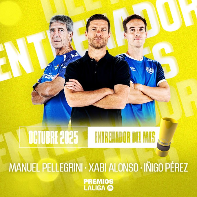 來源:X虎撲10月22日訊 西甲官方公布10月最佳主帥候選名單。