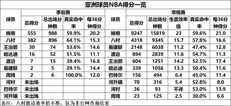 由此可見,男籃球員在世界大賽中很多不同維度去考量,姚明和胡衛(wèi)東基本穩(wěn)居前。