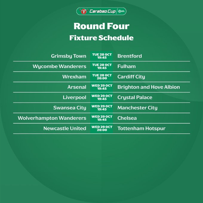 虎撲09月29日訊 EFL官方宣布聯(lián)賽杯第四輪賽程。
