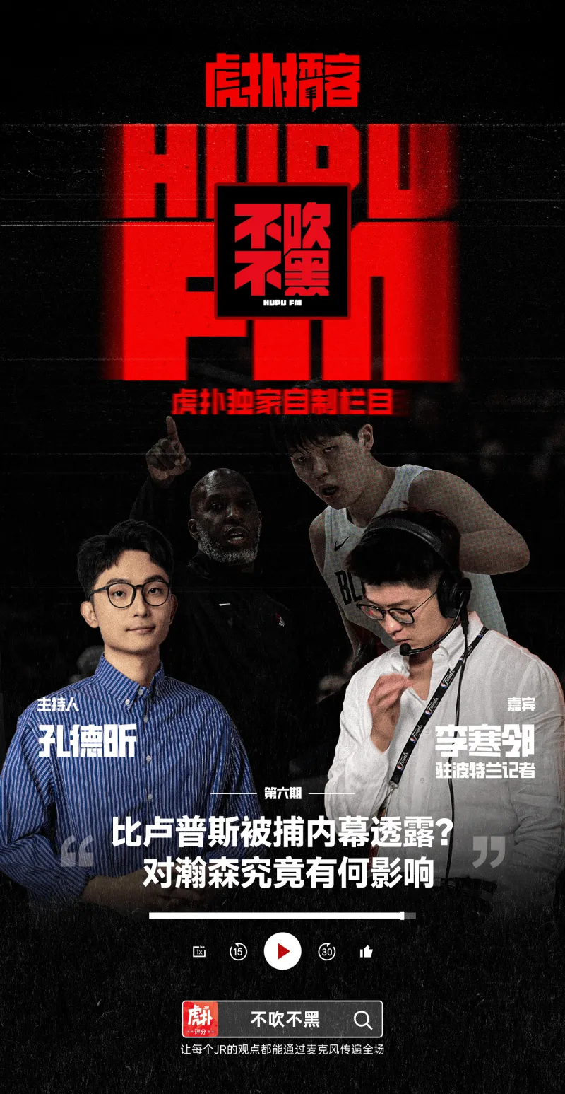 感謝各位JR對前幾期節(jié)目的大力支持!本期節(jié)目為虎撲自制播客《不吹不黑》的第六期內(nèi)容,我們邀請到了老朋友媒體人孔德昕擔(dān)任主持人,駐波特蘭記者李寒鄰擔(dān)任嘉賓,聽他們聊聊前開拓者主帥比盧普斯被捕的前因后果,同時也會聊到對楊瀚森的潛在影響。
