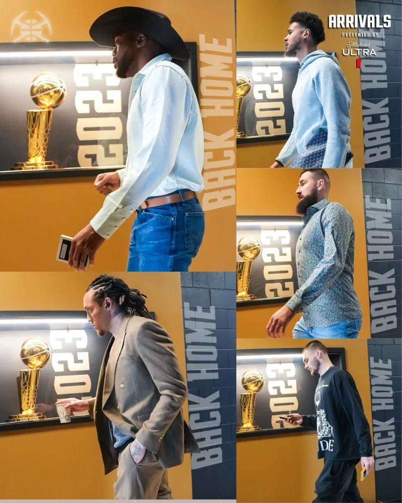 賽前,媒曬掘金社媒曬出球員步入場館的戈登瞬間,阿龍-戈登等球員出鏡,總冠照并配文: