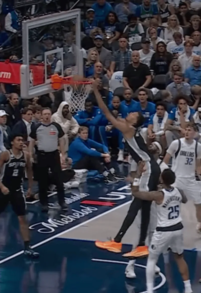 文班亞馬是在禁區(qū)外起跳完成扣籃了嗎???