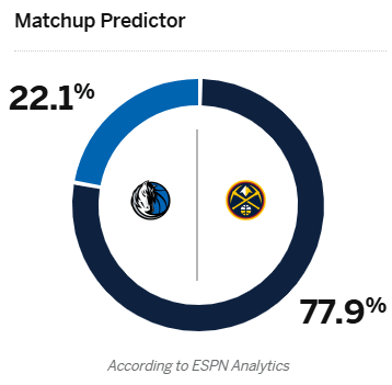 [流言板]ESPN預(yù)測(cè)明日比賽:掘金勝率77.9%,獨(dú)行俠勝率22.1%