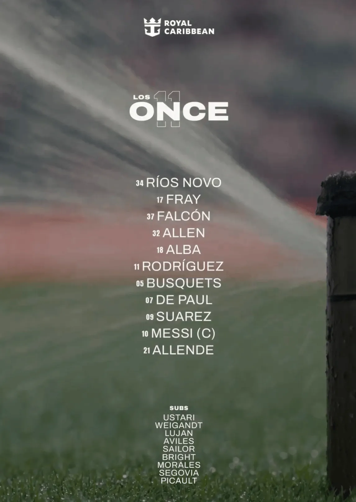 邁阿密國際替補:19-烏斯塔里、57-韋甘特、6-阿維萊斯、2-盧揚、15-賽勒、42-布萊特、81-莫拉萊斯、8-塞戈維亞、14-法法
