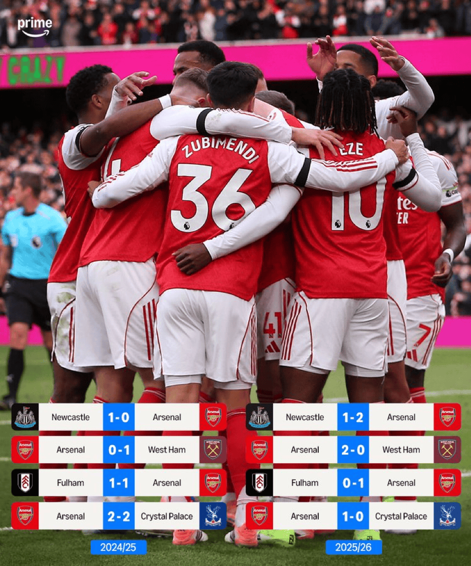 [流言板]阿森納本賽季對(duì)紐卡等四隊(duì)取得全勝,上賽季對(duì)陣時(shí)均有失分
