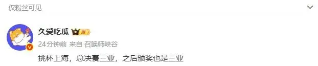 瓜主爆料:挑杯上海,總決賽三亞,總決之后之后頒獎也是也亞三亞