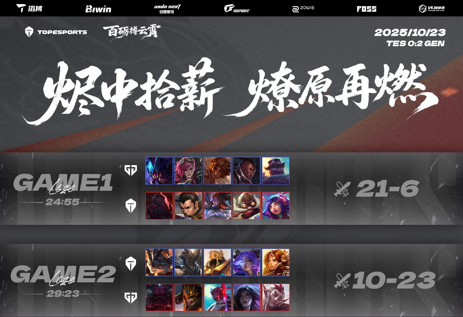 [流言板]TES官媒發(fā)布賽后海報(bào):燼中拾薪,燎原再燃