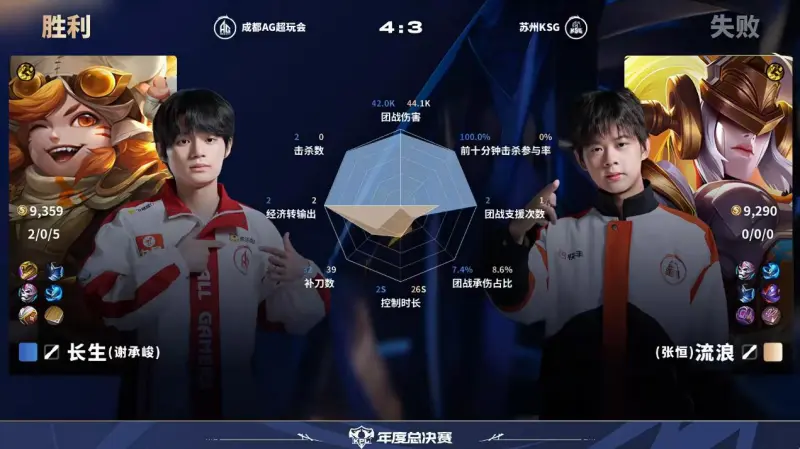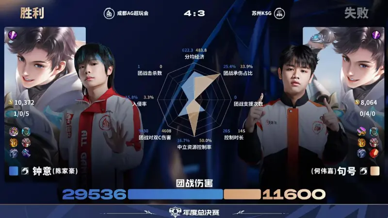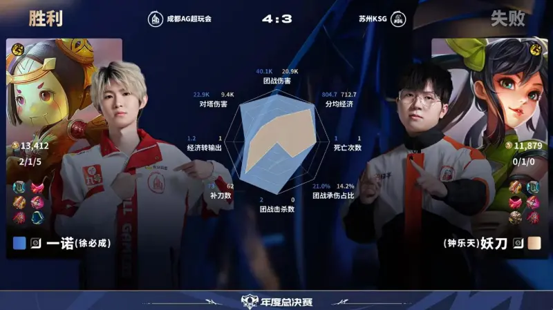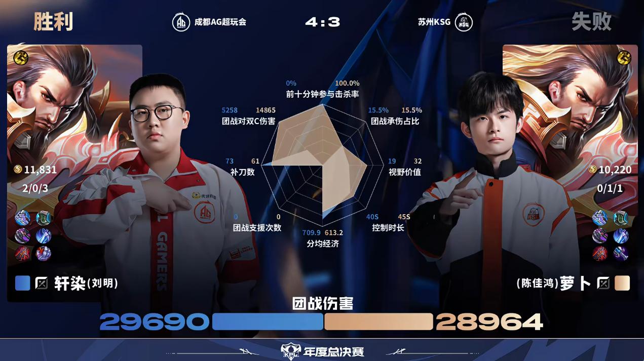 虎撲10月24日訊 AG/KSG第7局數(shù)據(jù)對比:一諾魯班七號全包圍妖刀孫尚香。
