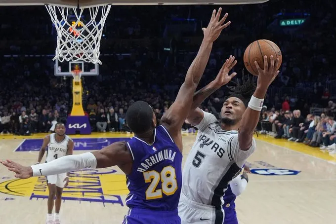 虎撲12月11日訊 NBA杯四分之一決賽,馬刺以132-119戰(zhàn)勝湖人。