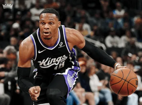 國(guó)王球員拉塞爾-威斯布魯克全場(chǎng)出戰(zhàn)40分鐘,少今賽季16投10中,三分3中2、罰球4中2得到24分13籃板14助攻2搶斷1蓋帽。