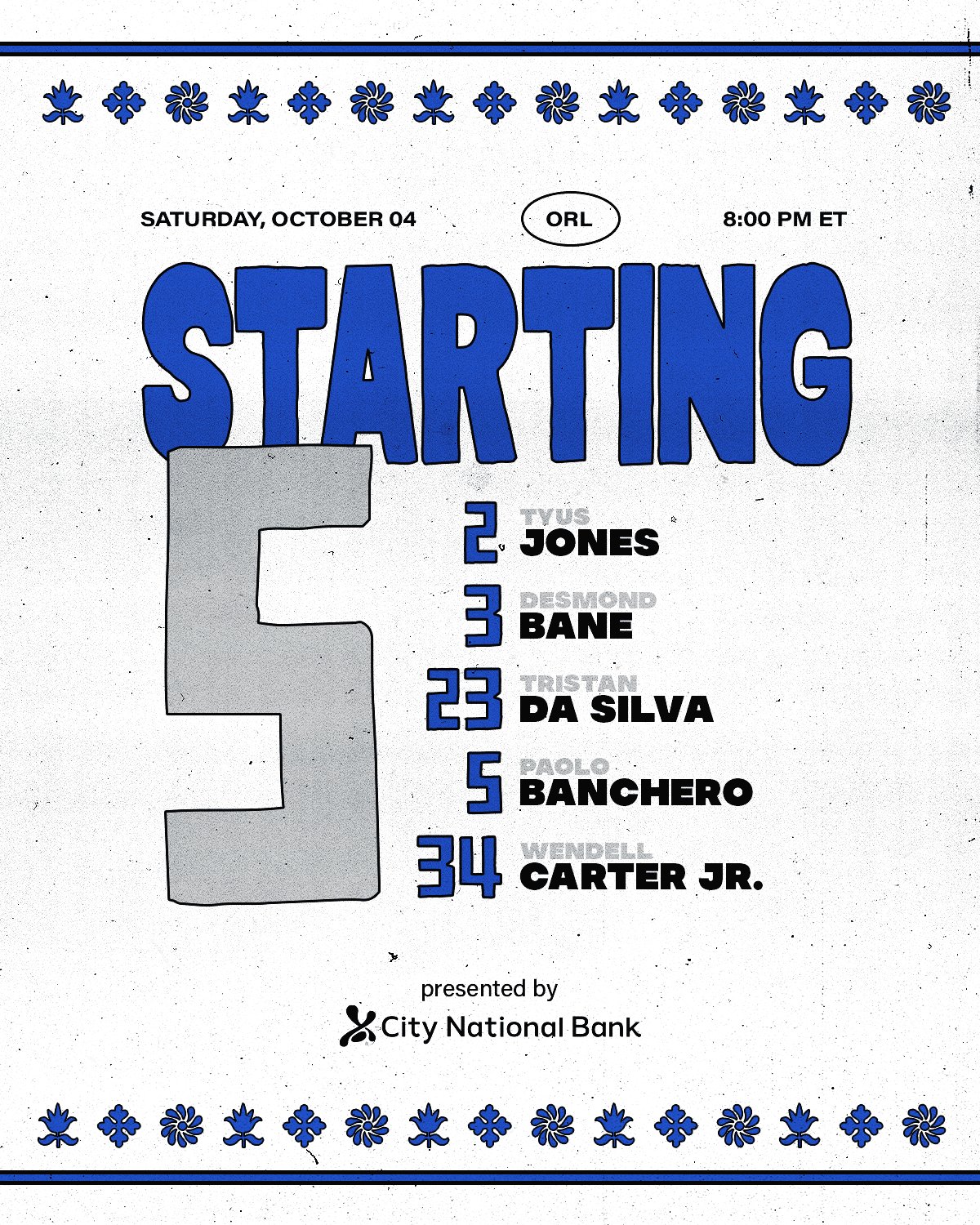 虎撲10月05日訊 魔術(shù)官方更新X,公布了今日球隊(duì)的恩達(dá)首發(fā)陣容。