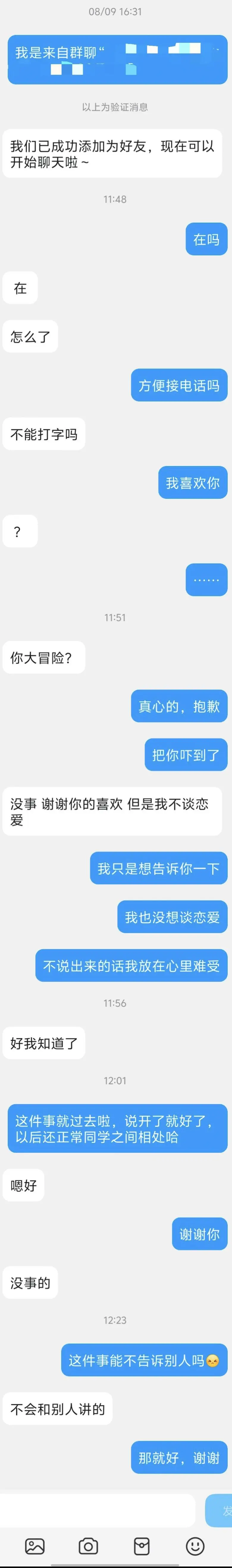 今天向他表示心意之后,心里終于安穩(wěn)一些了,但是內(nèi)心還是有點不舍和不甘。經(jīng)歷多的,比我年長的老哥們,可以給老弟一些建議嗎,包括以后到底該如何處理自己內(nèi)心的愛意,老弟現(xiàn)階段感到有些迷茫??