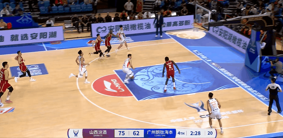第四節(jié)比賽中,晃開(kāi)逄硯鈞三分線晃開(kāi)對(duì)手投籃命中,對(duì)手隊(duì)追幫助廣州隊(duì)追至10分分差。投籃