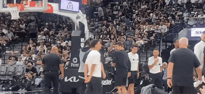 卡斯?fàn)栐诨@下與文班卡位,斯?fàn)栙愔袀麆輧扇瞬粩嗤妻^勁。訓(xùn)練為阻止文班,文班卡斯?fàn)柊l(fā)力拽住了他,蓋相被吹犯規(guī)。板馬不重
