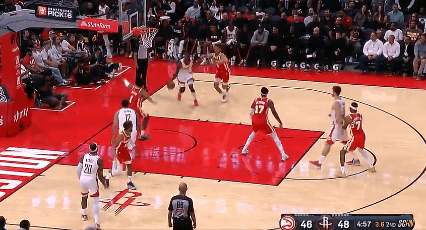 虎撲10月07日訊 NBA季前賽,火箭對陣?yán)销椀牡夭坏綂W倒地比賽正在進(jìn)行中。
