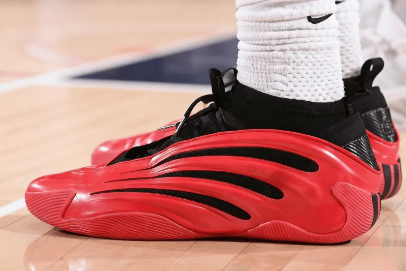 比賽中,今日祖巴茨上腳紅色adidas Harden Vol.9。紅色