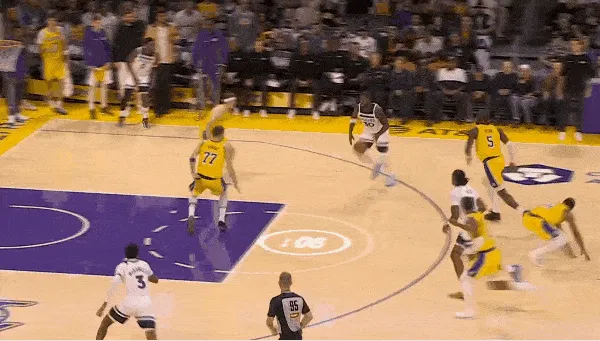 NBA常規(guī)賽,森林狼客場(chǎng)對(duì)陣湖人的進(jìn)攻接扣比賽正在進(jìn)行中。