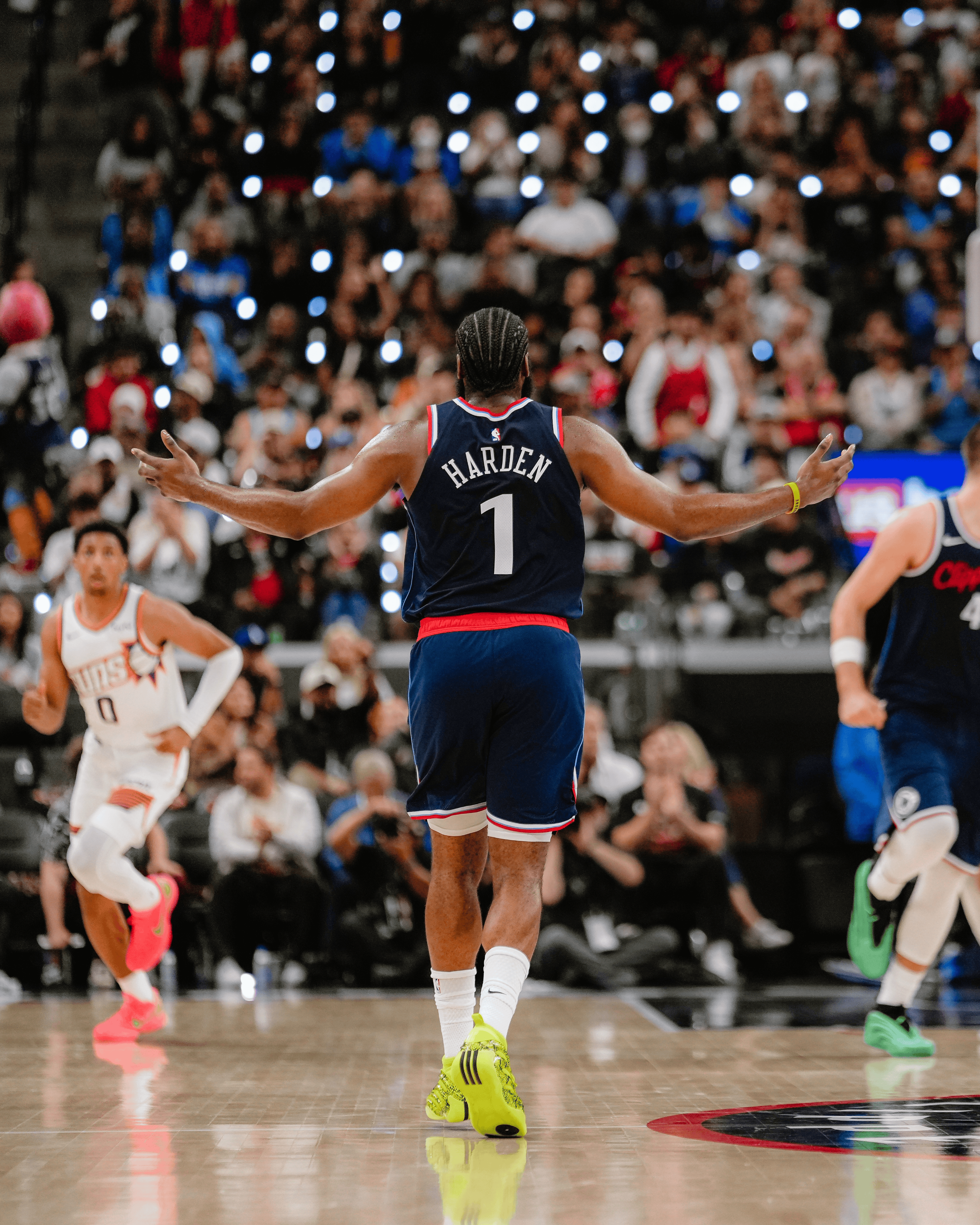 快船官方分享詹姆斯-哈登的有趣慶祝瞬間,并寫道:你們不覺(jué)得有趣嗎?!板快