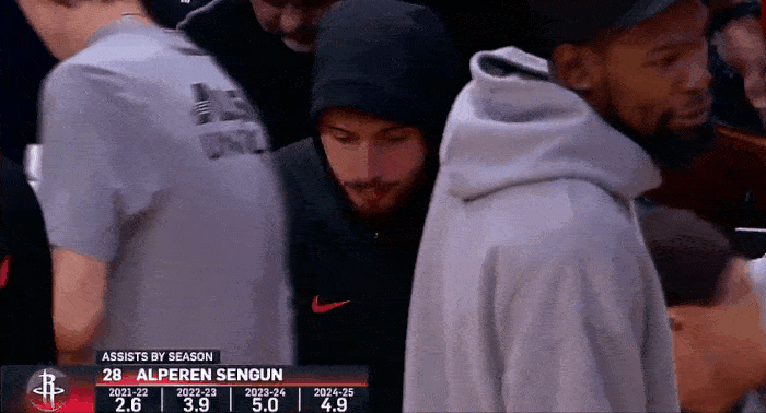 第三節(jié)比賽,秀鏡鏡頭給到場邊觀戰(zhàn)的頭給特今杜蘭特,今日休戰(zhàn)不打。到場杜蘭打
