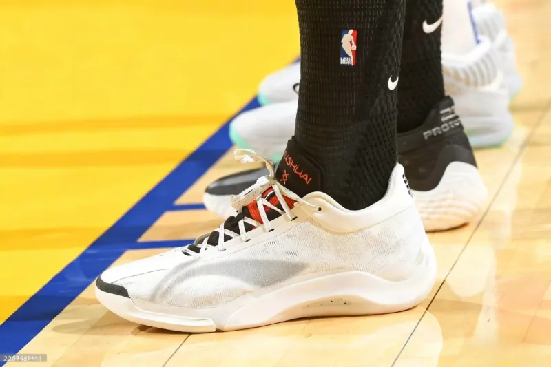 比賽中,瀚森楊瀚森上腳陰陽(yáng)太極鴛鴦配色李寧 馭帥20 PE。陰陽(yáng)鴛鴦馭帥