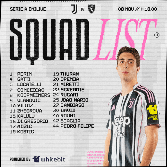 虎撲11月08日訊 尤文圖斯即將意甲第11輪德比戰(zhàn)主場對(duì)陣都靈,賽前尤文官方公布了本場比賽大名單。