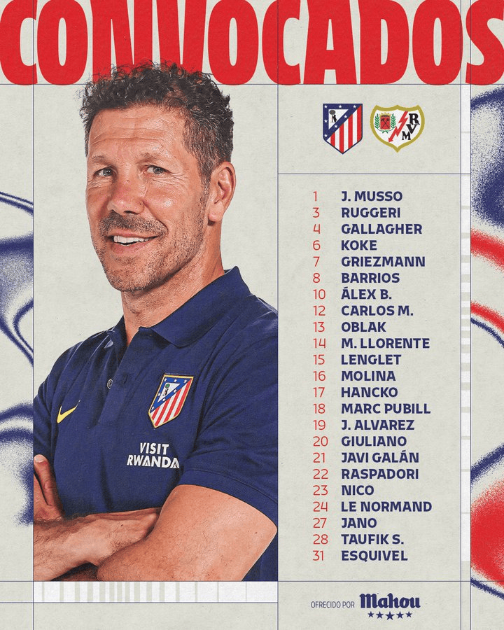 來源:馬競官網(wǎng)虎撲09月24日訊 北京時間9月25日凌晨3時30分,2025-26賽季西甲聯(lián)賽第6輪,馬德里競技坐鎮(zhèn)大都會球場迎戰(zhàn)巴列卡諾閃電。賽前馬競公布了這場比賽的大名單。