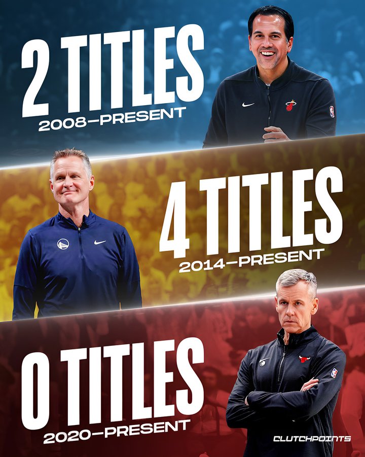 虎撲07月31日訊 今日,美媒ClutchPoints更新社交媒體,現(xiàn)役曬出一則有趣的執(zhí)教數(shù)據(jù)紀錄。