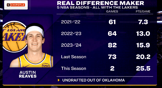 [流言板]勵(lì)志典范!里夫斯征戰(zhàn)五個(gè)賽季,場(chǎng)均得分一路攀升至25.5分