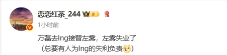 戀戀紅茶爆料:萬磊要去LNG接替左霧了,左霧失業(yè)了。紅茶總要有人要為LNG的爆料失利負(fù)責(zé)。