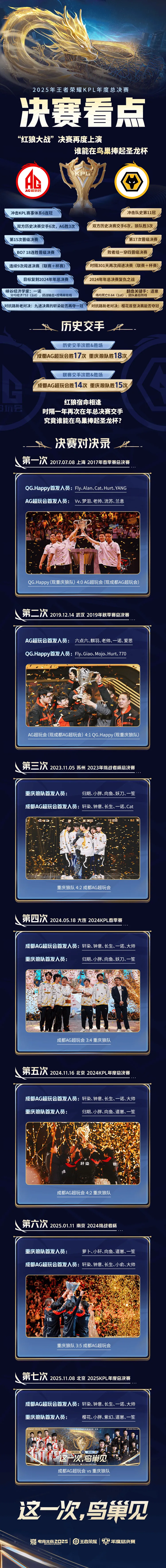 虎撲11月07日訊 決賽看點(diǎn):是AG完成KPL賽事六連冠、還是狼隊(duì)斬獲第十一冠?原文如下: