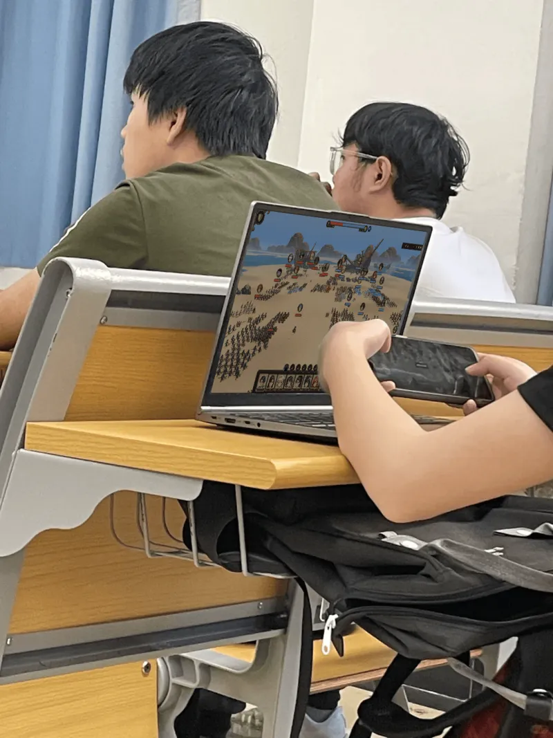 這是電腦屏幕的,不是玩游手機(jī)的,這哥們玩了一節(jié)課了,游戲看起來(lái)是玩游一群小人打架