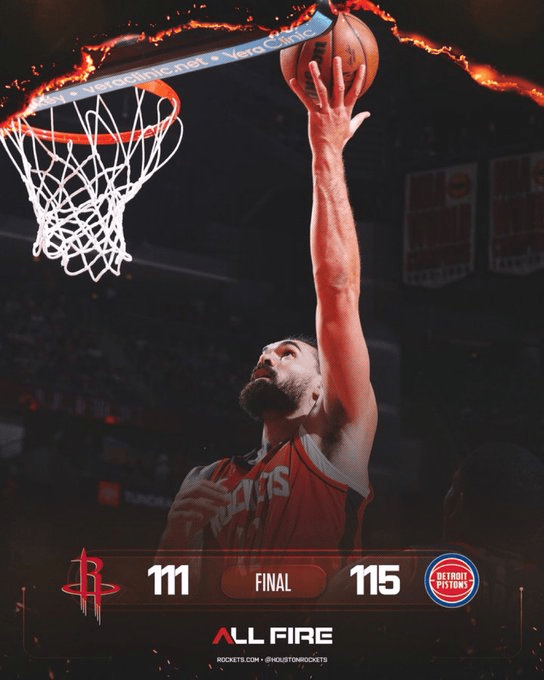 虎撲10月25日訊 今天NBA常規(guī)賽,火箭以111-115不敵活塞。足夠支援制
