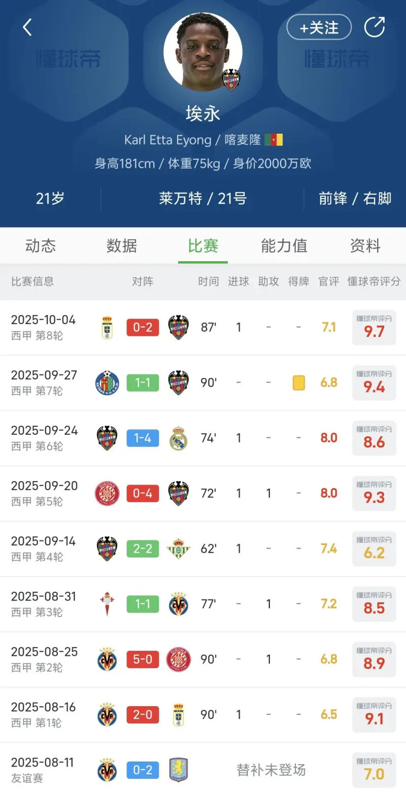 不過沒有看過他的比賽(第二輪踢萊萬特的時候埃永還在黃潛),不知道實際怎么樣,有沒有看過的兄弟說一下?