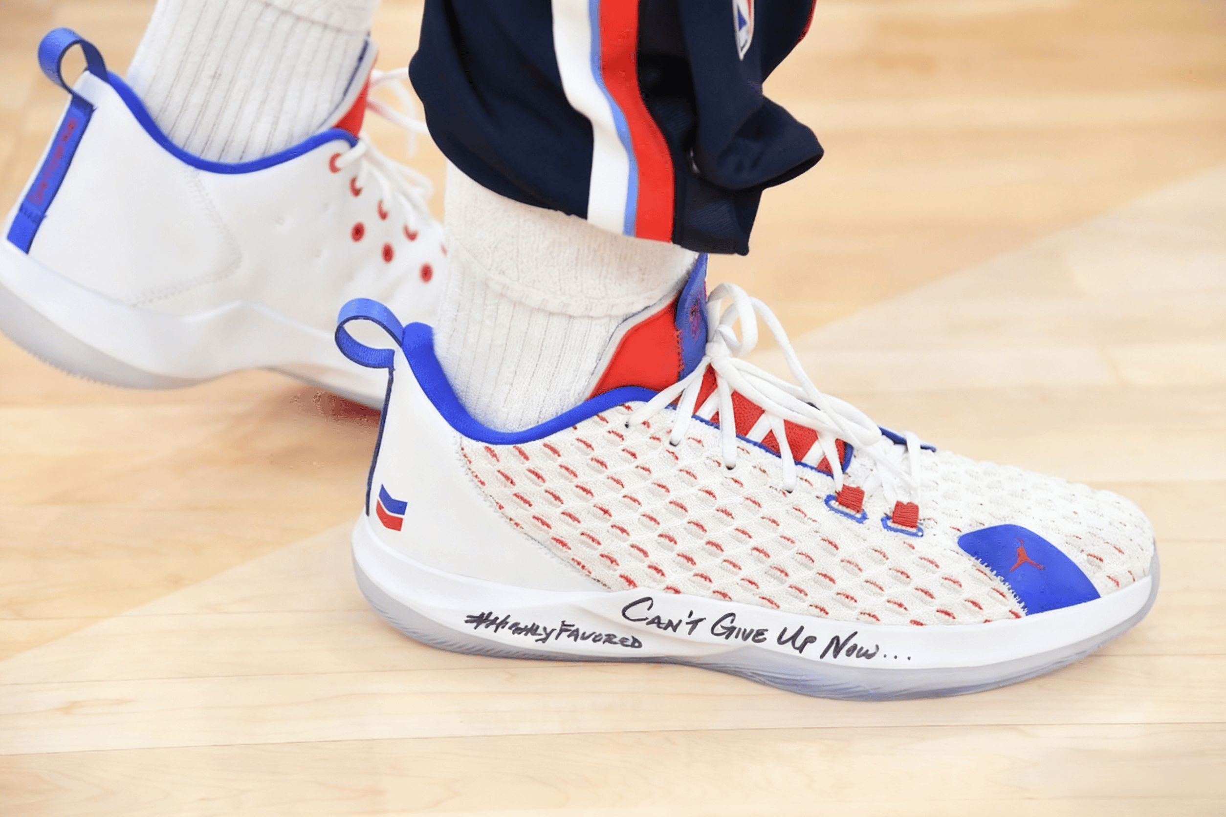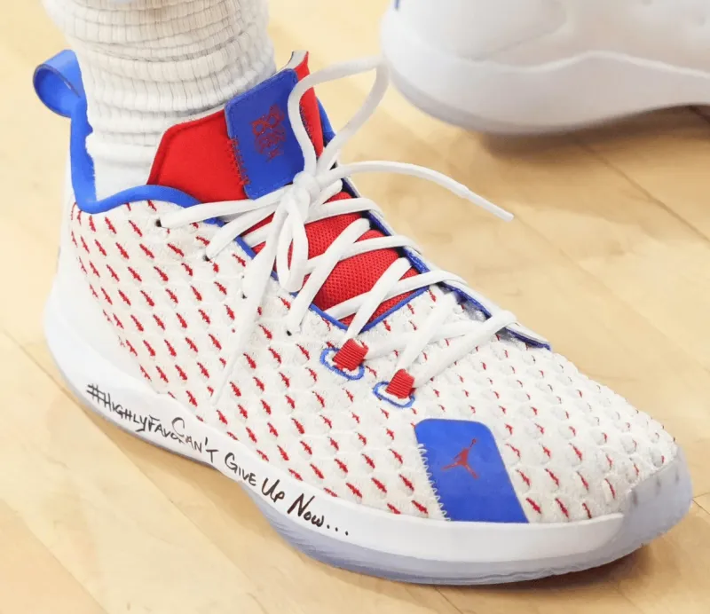 比賽中,念已保羅上腳個(gè)人專屬配色Jordan CP3.XII PE。祖父專屬