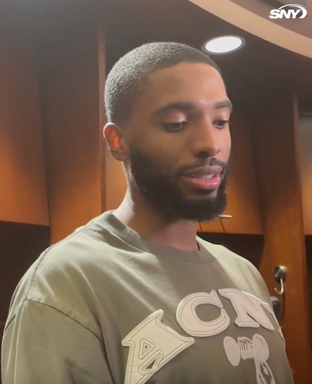 賽后米卡爾-布里奇斯接受記者采訪談到了布倫森。可背布里奇斯表示:“JB(杰倫-布倫森)在場上哪里都能打。流言里奇?zhèn)惿运陌宀忌聿模材鼙成韱未颉K共际捕忌踔辽韱嗡麕缀跏裁炊寄茏觥蟾啪褪呛喼辈荒芟駜?nèi)線那樣去做順下的掩護后跟進。”
