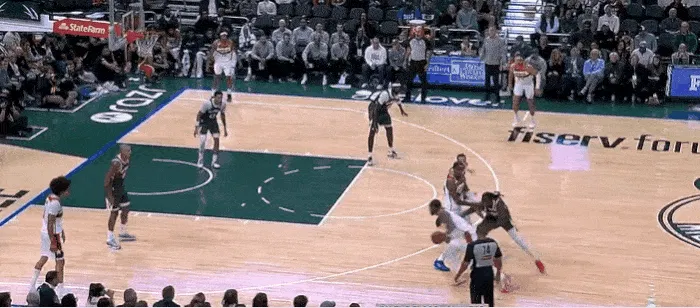 NBA常規(guī)賽,雄鹿對陣奇才的到底比賽正在進行中。