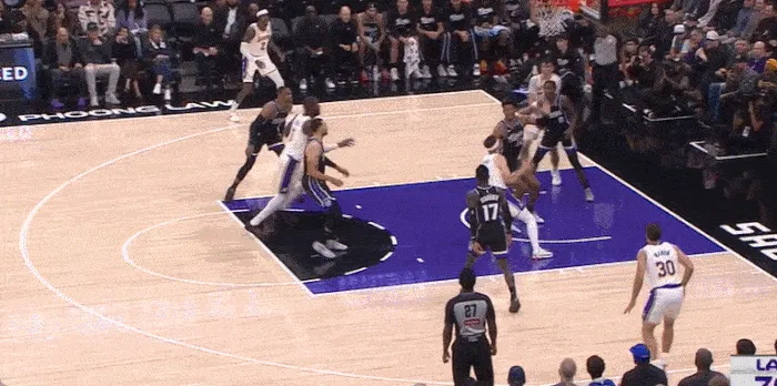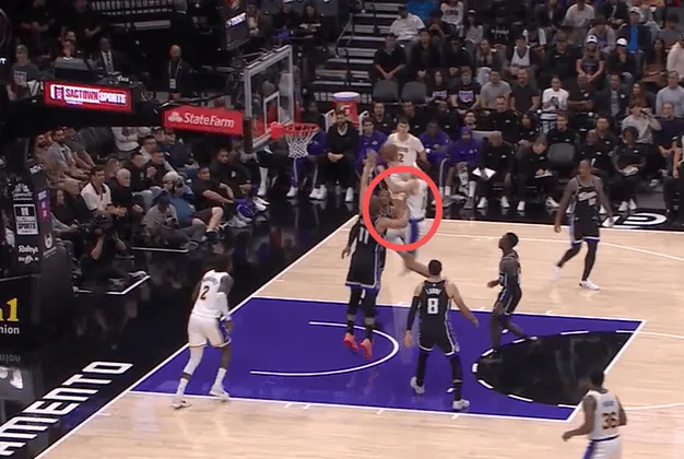 里夫斯上籃時(shí) 薩博尼斯明顯有推腰動(dòng)作