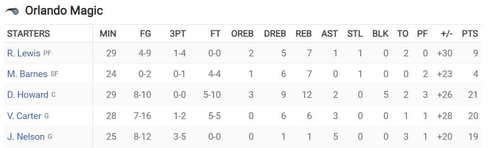 首發(fā)為:尼爾森、卡特、馬特-巴恩斯、劉易斯和霍華德。