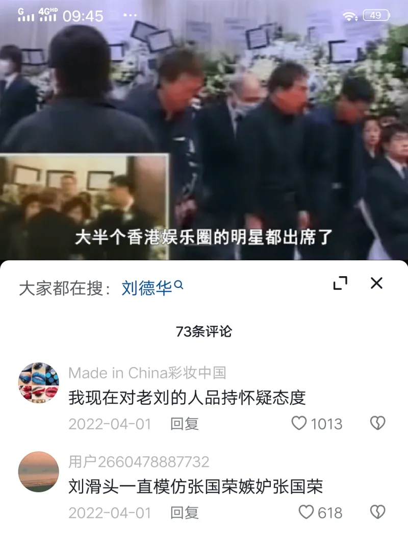 這類視頻和帖子的國榮評論區(qū)是清一色拉踩劉德華的,什么劉德華人品有問題,劉德禮劉德華嫉妒張國榮等等,什定占據(jù)著高評。去參