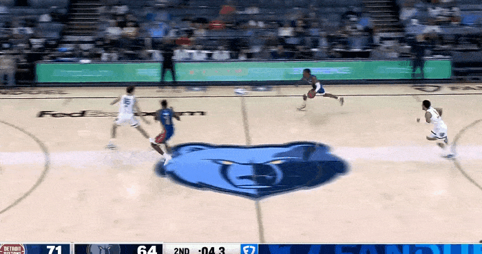 第二節(jié)比賽中,洲步艾維反擊歐洲步打成2+1,打成單節(jié)活塞單節(jié)轟50-22反超灰熊10分。活塞轟