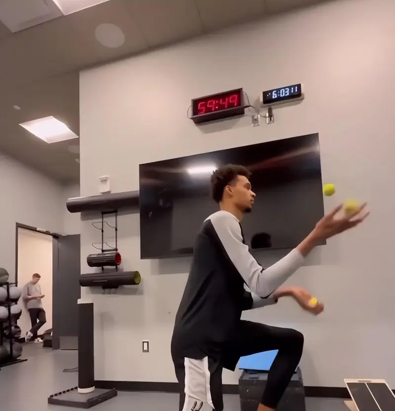之后,文班回到圣安東尼奧,他就是個訓練狂魔,每天對著球館里的每一位球員進行一對一的防守,中間不能喘息。