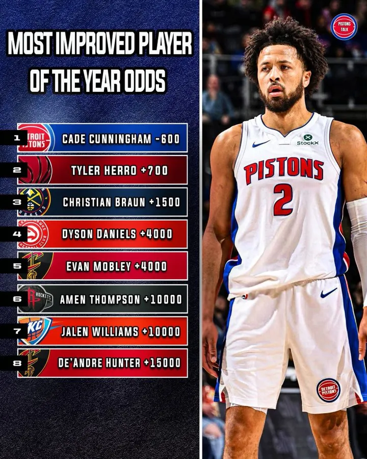美媒也曬出了在鮑威爾無緣最快進步球員獎項評選后,目前前五名的最快進步球員獎項賠率如下: