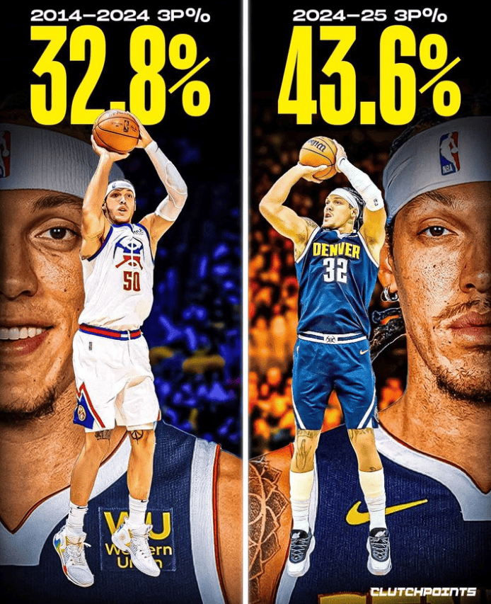 但是到了2024-2025賽季,一切都變了。在尼古拉-約基奇身邊打球,戈登找到了節(jié)奏,空間和信心,三分命中率高達(dá)43.6%,而且出手量相當(dāng)可觀。即便如此,外界仍然質(zhì)疑那只是曇花一現(xiàn)。如今質(zhì)疑聲可以徹底消失了,在賽季揭幕戰(zhàn)對(duì)陣勇士的比賽中,戈登完全“起飛”,三分球11投10中,砍下50分,同時(shí)僅有6次罰球。