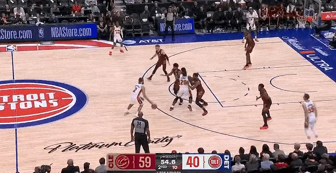 NBA常規(guī)賽,騎士對(duì)陣活塞的進(jìn)目比賽正在進(jìn)行中。
