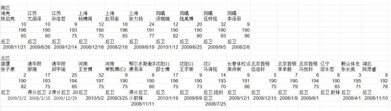 我統(tǒng)計一下今年U17報名表里所有08-10級190cm以上的后衛(wèi)(只要備注里寫了后衛(wèi)的都統(tǒng)計上去了),結(jié)果南北區(qū)加起來才26個人。。。。。比參賽球隊還少一些。