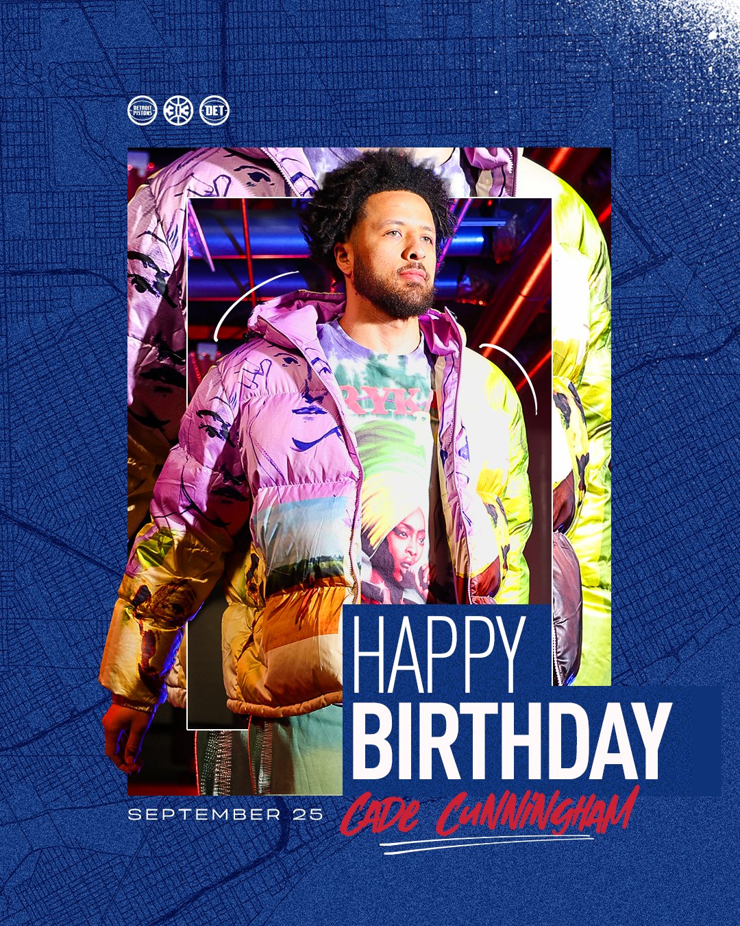 “坎寧安,塞官生日快樂!照祝”活塞官方附文道。凱德