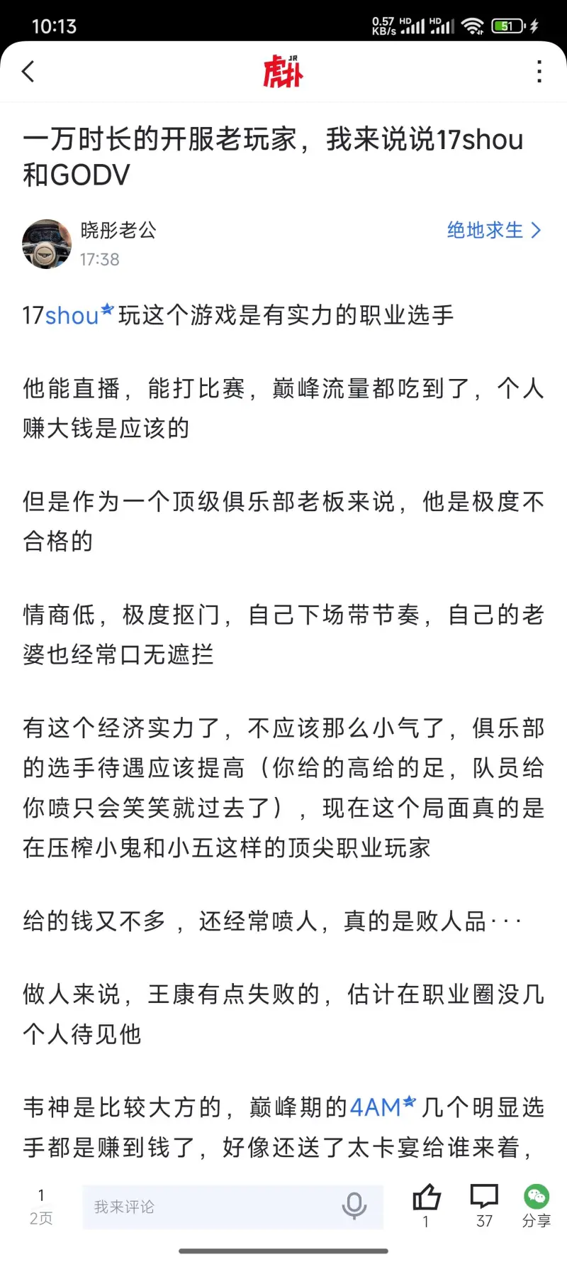 我見過串子,我見過黑子,某沒我頭一回見這種。因?yàn)槲矣螒驎r(shí)間長,所以我能批評17俱樂部做得如何。因?yàn)槲矣螒驎r(shí)間長,所以我能批評4的老板如果。游戲時(shí)長跟你這些有錘子關(guān)系。一個(gè)游戲玩的多的人,就等于自己社會閱歷強(qiáng)是吧?哪怕你說你比賽看得多,人見得多我都不說你。非得拿自己游戲時(shí)長說。