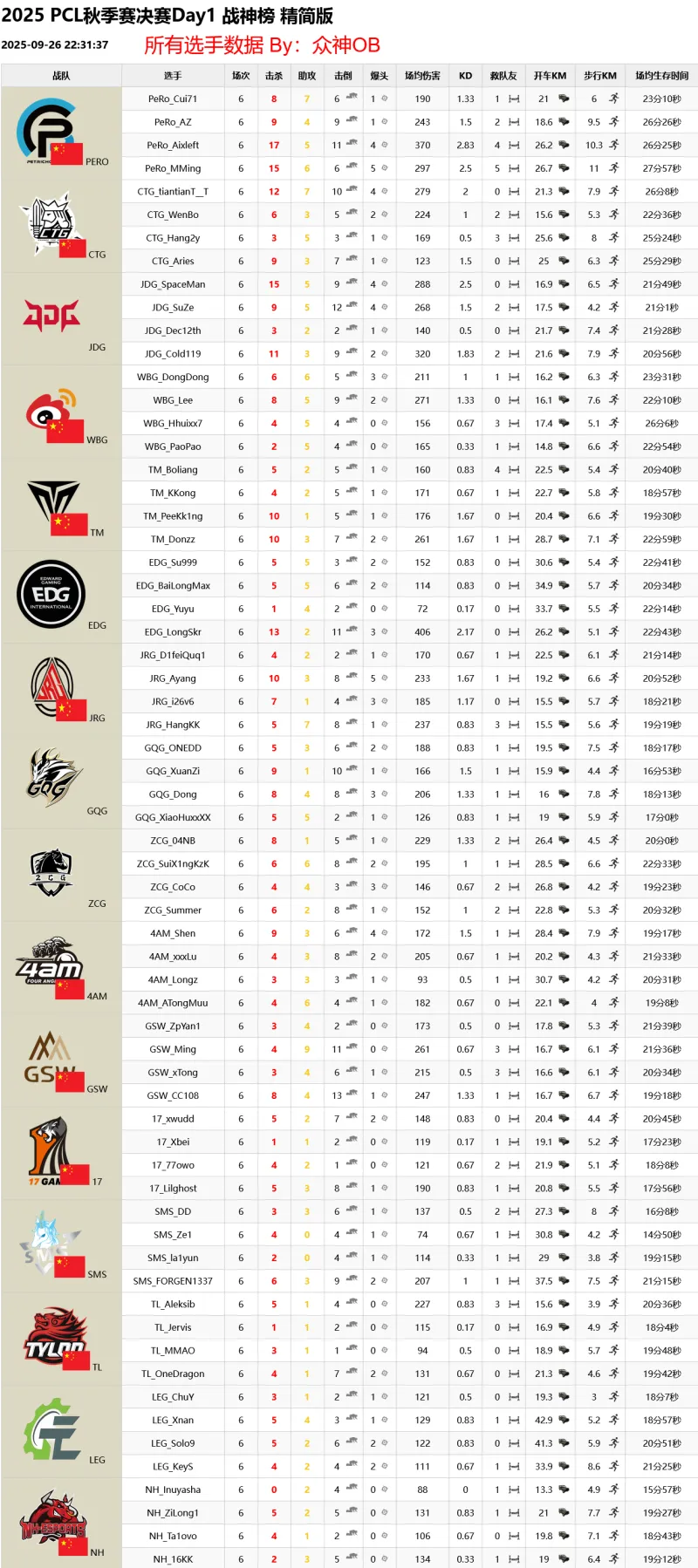 2025 PCL秋季賽季后賽第一天 積分榜&戰(zhàn)神榜由眾神OB 發(fā)表在絕地求生 https://bbs.hupu.com/pubg